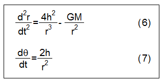 質量Mの周りを、質量mの物体が、万有引力の法則のもとで回転する運動方程式