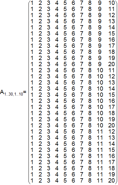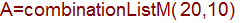 ここでは行列形式で、5個の異なる記号から3組の組み合わせを求める計算です。