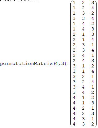 行列形式の順列リスト