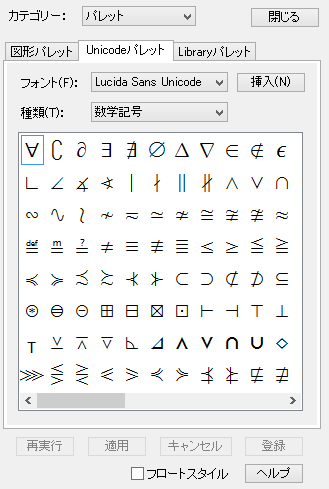 Unicodeにしかない、特殊な記号などをパレットより簡単に入力できます。